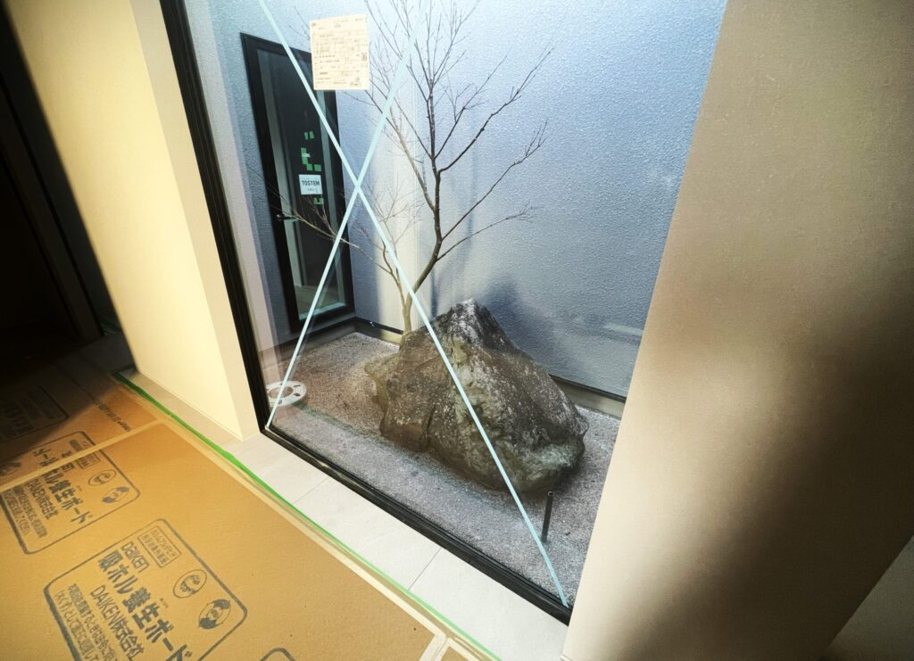 玄関入ってすぐにある小庭です!足元にはコケを貼る予定です!
