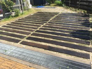 マクラ木と芝生の駐車場をつくりました。