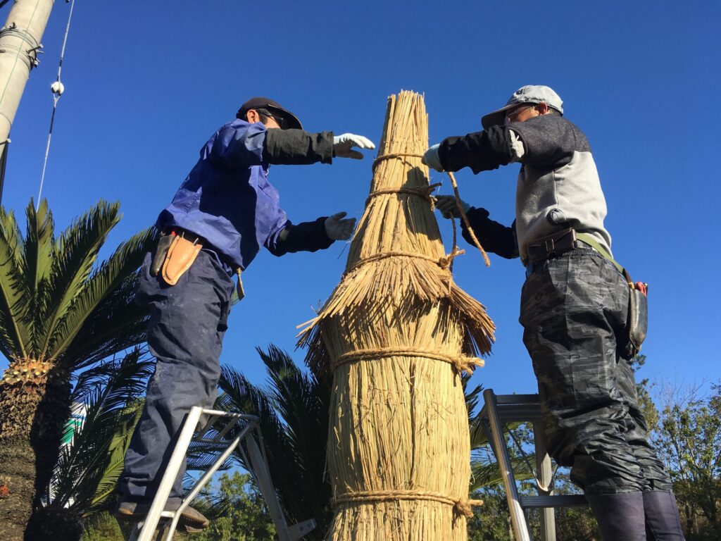 ソテツのコモ巻き作業12月の初めに作業させていただきました。