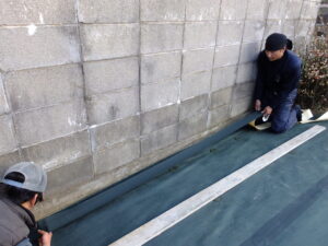 きちんと隅まで専用の強力ボンドやテープで貼り付けます。