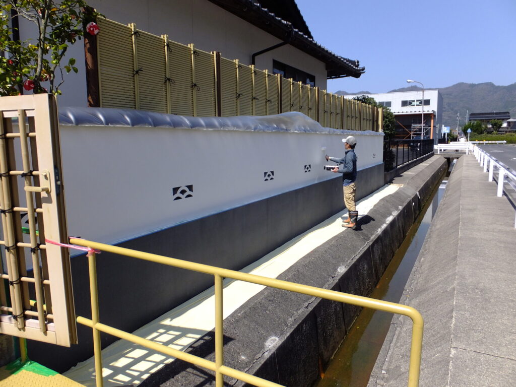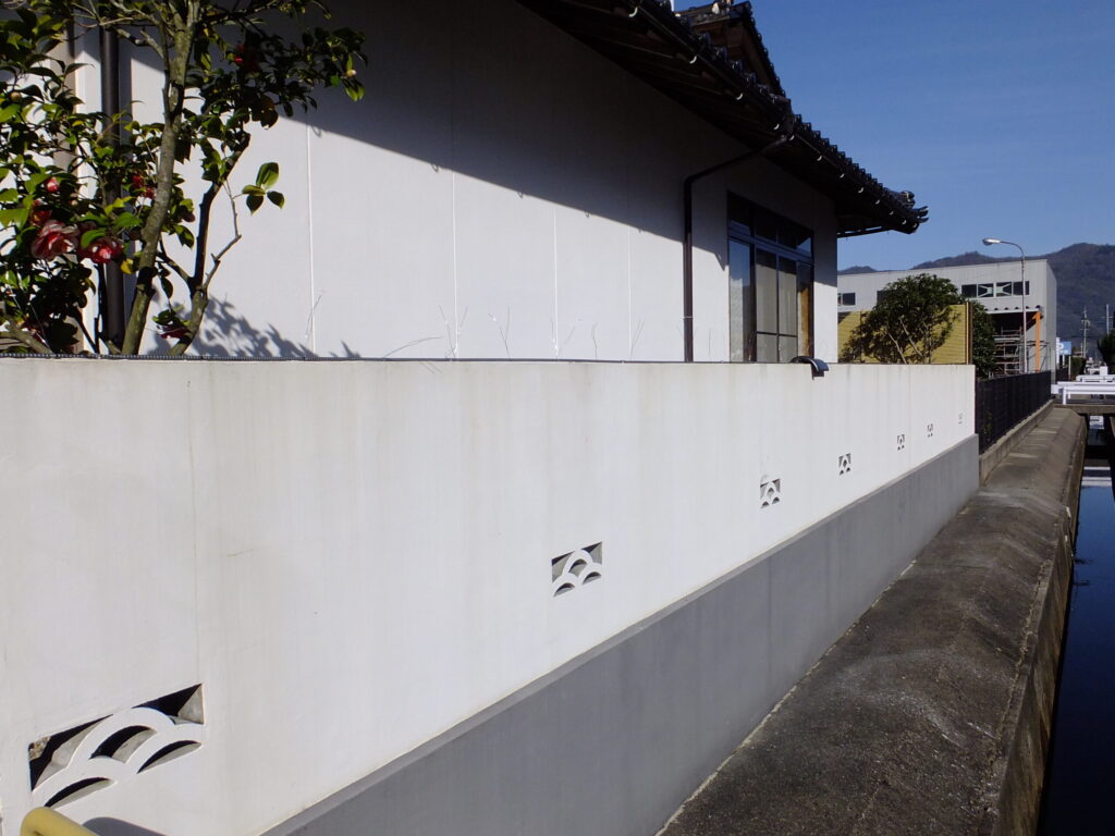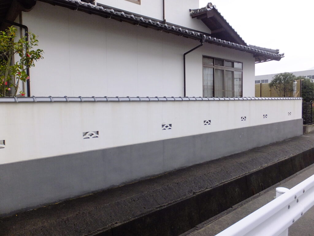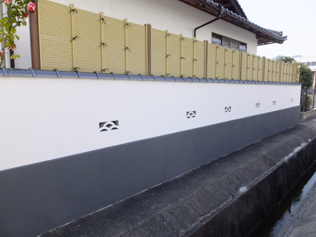 数年前に竹垣フェンスをブロックの上に設置されましたが、竹垣に付着する排気ガス、ほこりの汚れがダイレクトにブロック塀に流れ着き、汚くて困っておられました。