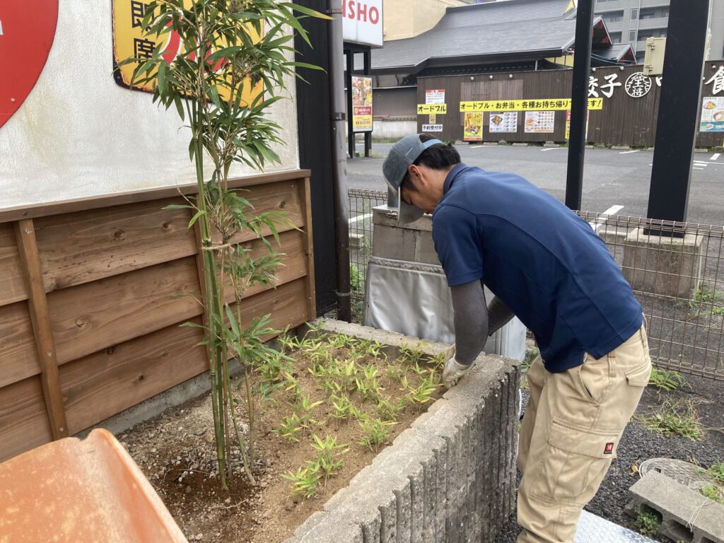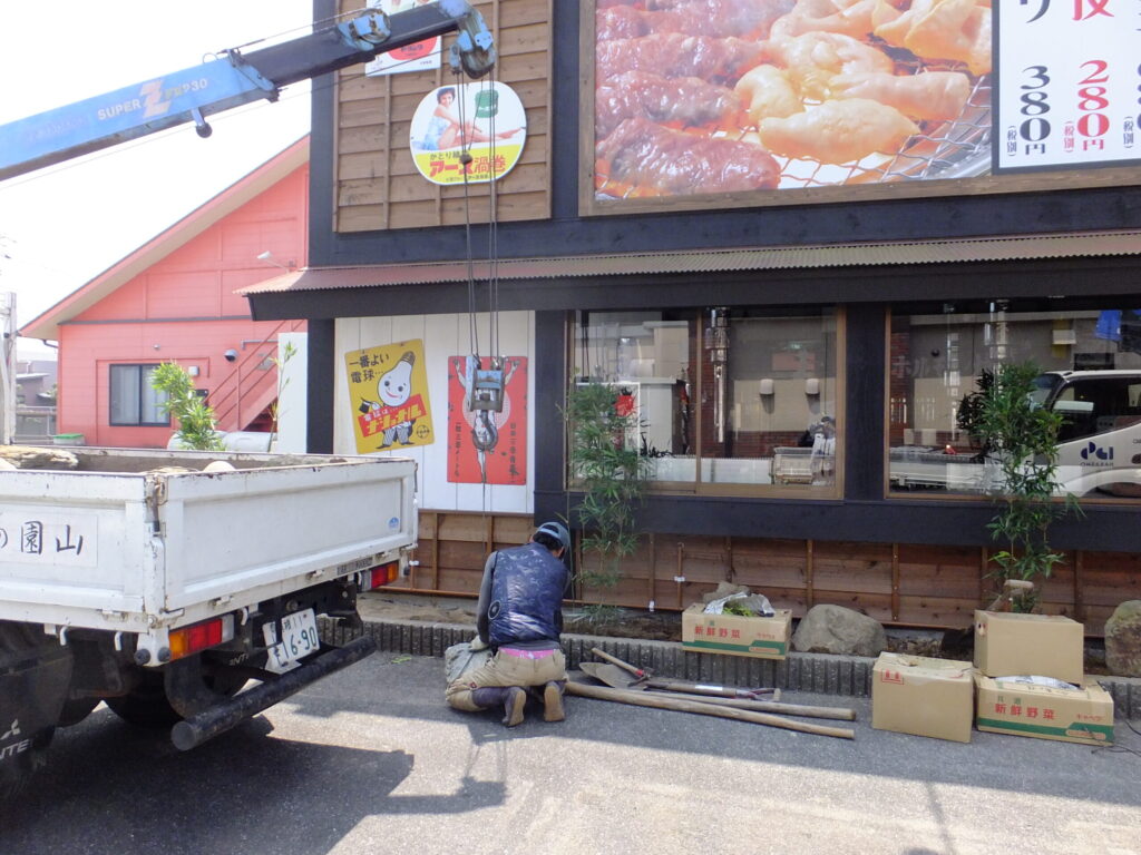 出雲市にも同じ系列店のある焼肉屋さんの店舗前植栽工事です。