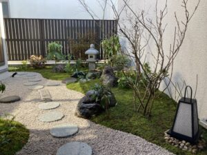 かっこいい坪庭ができました。苔の風情がいい感じです。