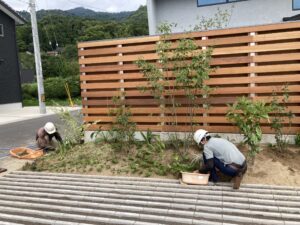 様々な種類の下草を混植しております。(種類、数量、今後の成長することなど計算されております)やはり、緑を入れると家がより一層オシャレになりますよね。