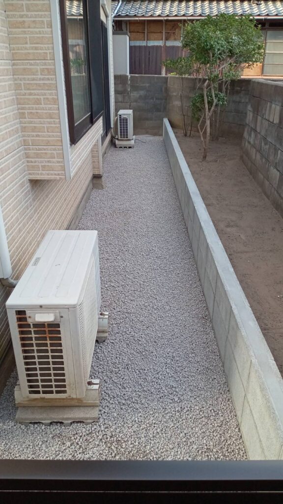 2021.10.16 防草対策と砂利敷き しっかりと整地と勾配もつけて防草シートと園芸砂利を入れました。防草シートは業務用強力シートです。このシートなら当分安心です。安いシートは経年劣化も早いのでお気を付けて選んでください。