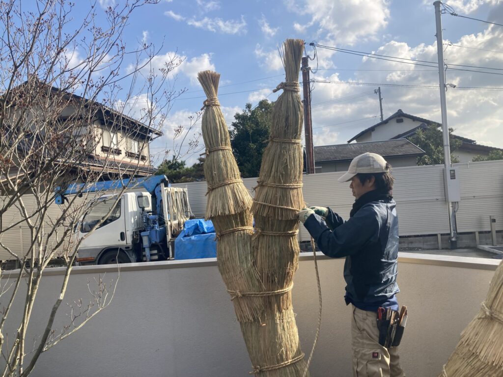毎年恒例とさせていただいておりますコモ巻き作業です。これをすると冬が来たなあっと感じますね。