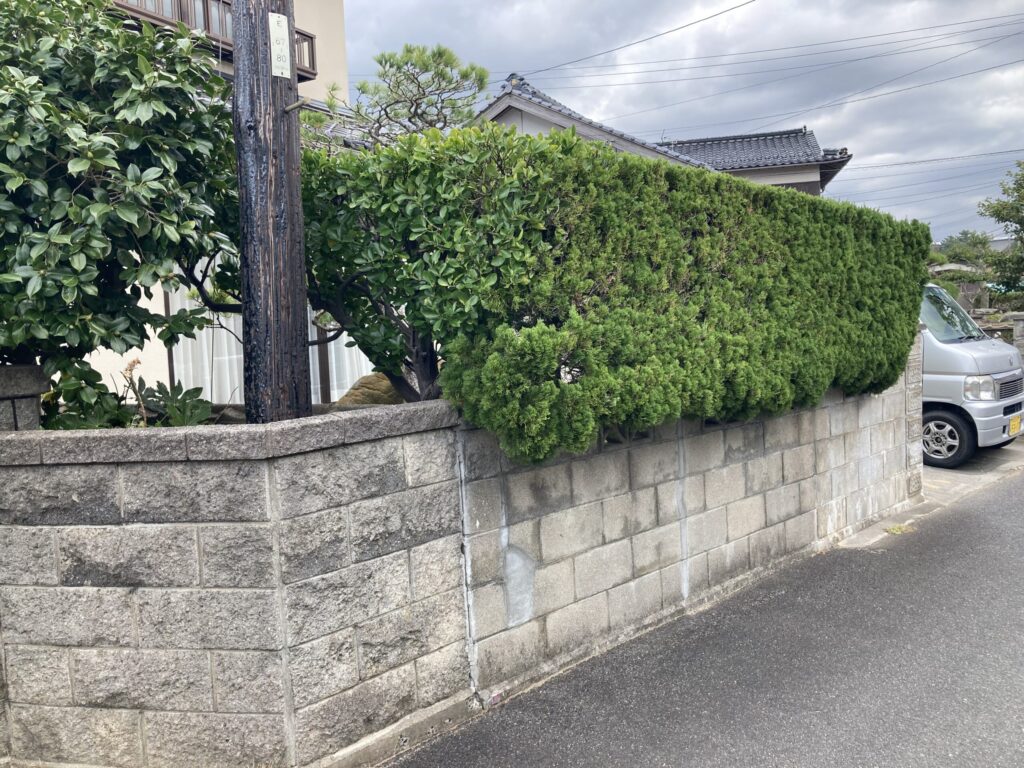 2022.05.26 生垣からフェンスへ 近年、目隠しの壁と言ったら生垣よりもアルミフェンスを好まれるお客様がかなり多くなってきました。今回こちらもリフォーム庭園のなかで老朽化したブロック塀の直しとアルミフェンスの設置をいたしました。