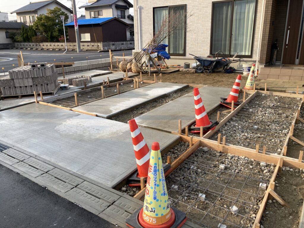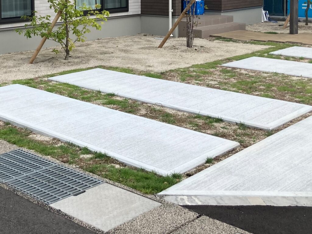 さらに駐車場も芝生の管理ができなくて少し枯れたところがポツポツと目立ち見た目が悪いので洗い出しコンクリートで拡張します。