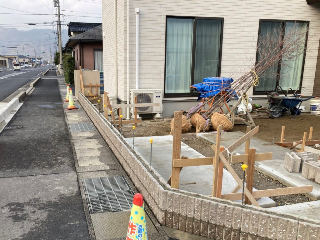 人や車の通りの多いところで前から目線が気になっておられました。ブロック4段・高さ1.2mのフェンスを設置することになりました。今はブロックを積み立て中!